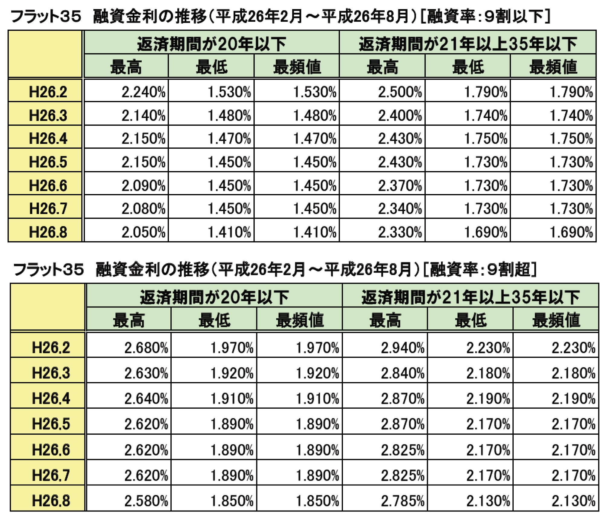住宅金融支援機構(東京都文京区)は8月1日、各金融機関が提供する「フラット35」の2014年8月の適用金利を公表した。