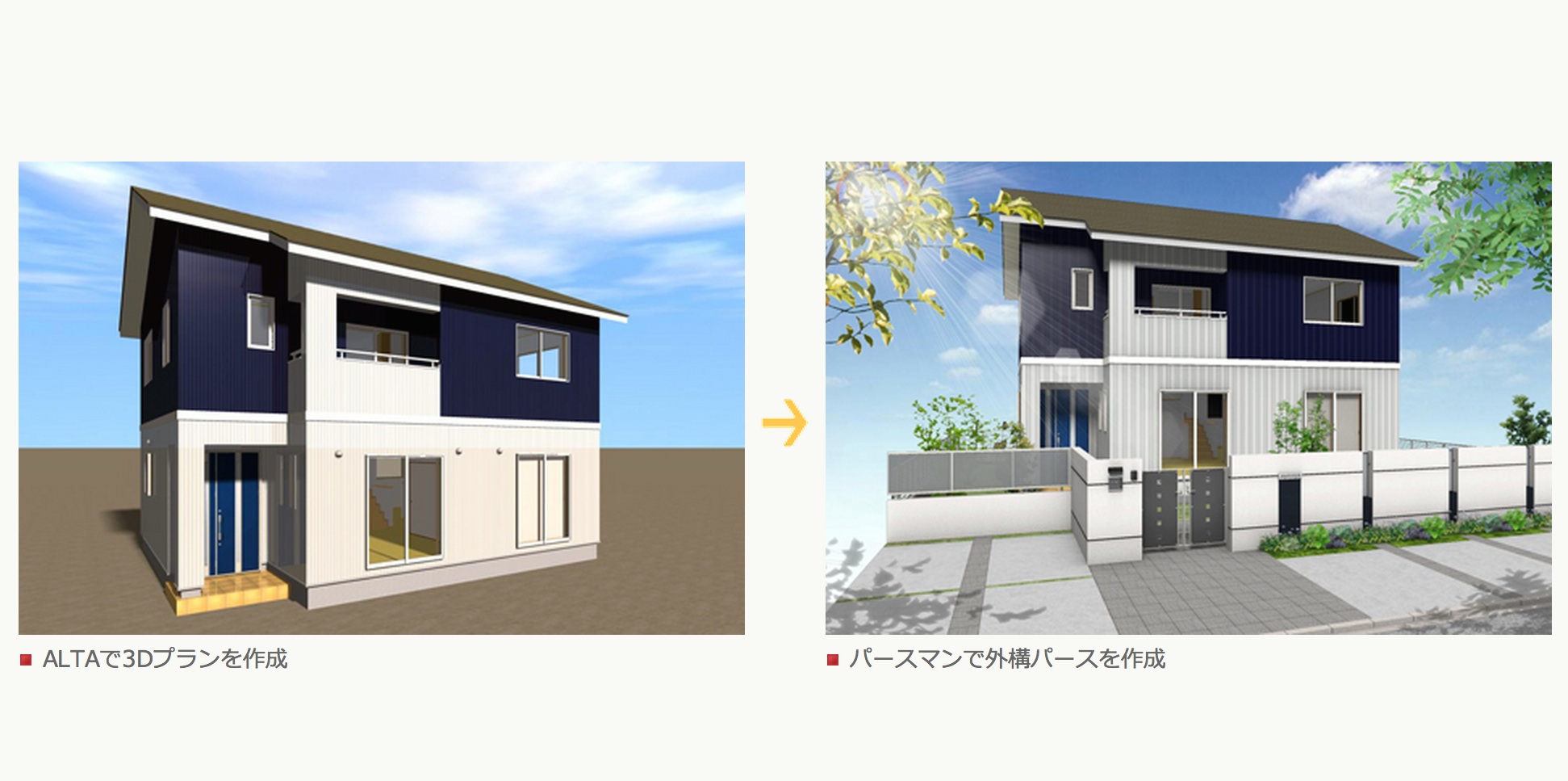 コンピュータシステム研究所(宮城県仙台市)は8月20日、住宅プレゼンシステム「ALTA(アルタ)」とパース作成ウェブサービス「パースマン」(運営:ユニマットリック、東京都港区)とのデータ連携を実現。簡単に外構付き外観パースを作成できる「ALTA外構パースオプション」を発売する。
