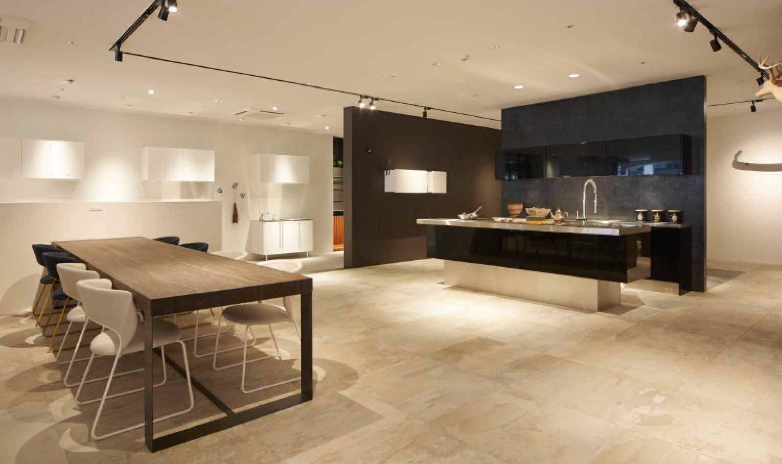 コンセプトは「ブティック」。327坪の広大なスペースに、キッチン、バス、洗面、建具、収納、タイル、フローリングなどこだわり抜いた製品だけを展示した。住まいとリノベーションに関するイベント、建築相談会も積極的に開催する。
