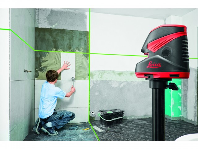 「LeicaLino L2G+」は、赤色レーザーよりも4倍見やすい緑色レーザーを採用。水平、鉛直、90°クロスライン照射が可能で、明るい場所や30mまでの長距離でもレーザー光を見ながら作業できる。精度は5mでプラスマイナス1.5mm以内。