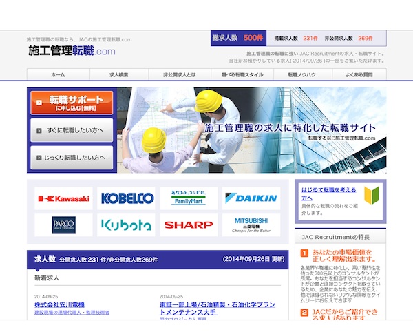 ジェイエイシーリクルートメント(東京都千代田区)は9月26日、施工管理者の転職に特化した求人サイト「施工管理転職.com」を開設した。
