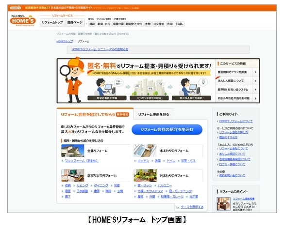 ネクスト(東京都港区)は10月2日、リフォーム情報サイト「HOME’Sリフォーム」を大幅にリニューアルした。