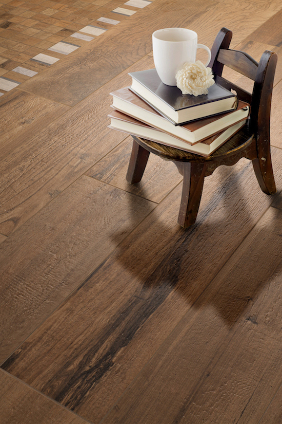 「Saloon(サルーン)」は、トレンドとなっている天然木の質感を再現したウッドタイル。屋内外の床、室内の壁に使用でき、4種類の形状・4色をそろえた。