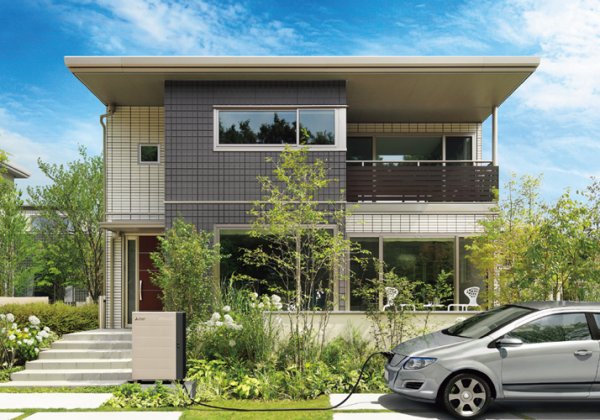 同商品はEVパワーコンディショナの搭載で、系統連系を可能としたV2H(Venicle to Home)住宅。EVとPV、電力会社の電力の3電源をニーズに合わせて最適利用できる。住宅用蓄電池の数倍の蓄電容量を持つEVの活用で、エネルギー自給自足率が向上し、ライフスタイルによっては自給自足率75%を達成することも可能としている。
