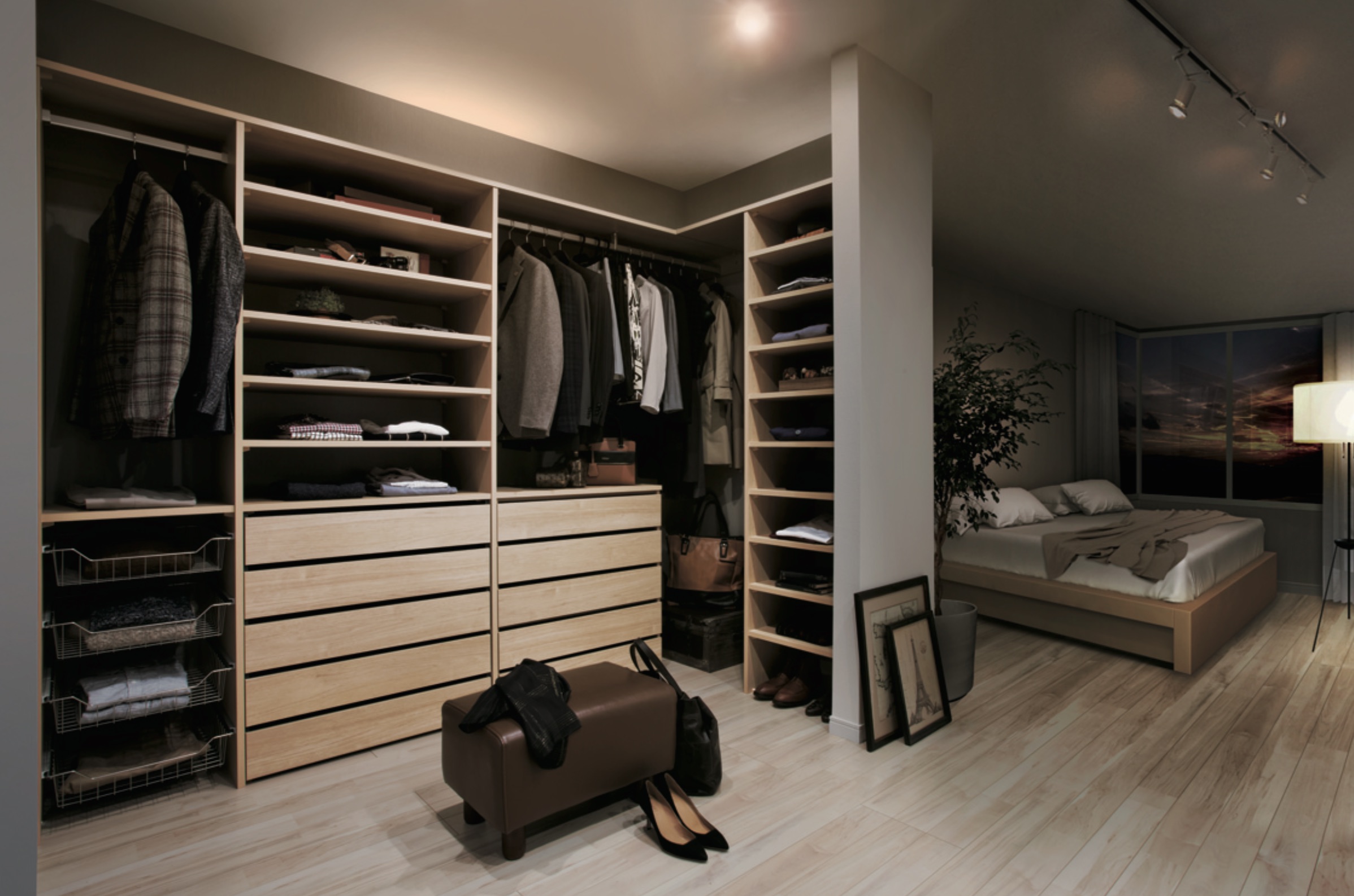 従来は「シェルホワイト」1色展開だったが、新たに木目調2色を追加し3色に。 また、床までのフルサイズの側板を不要にし、上部のハンガーパイプ取り付け部分のみに設置できる「ショート側板」を導入。資材を大幅に削減するエコ+リーズナブル設計とした。