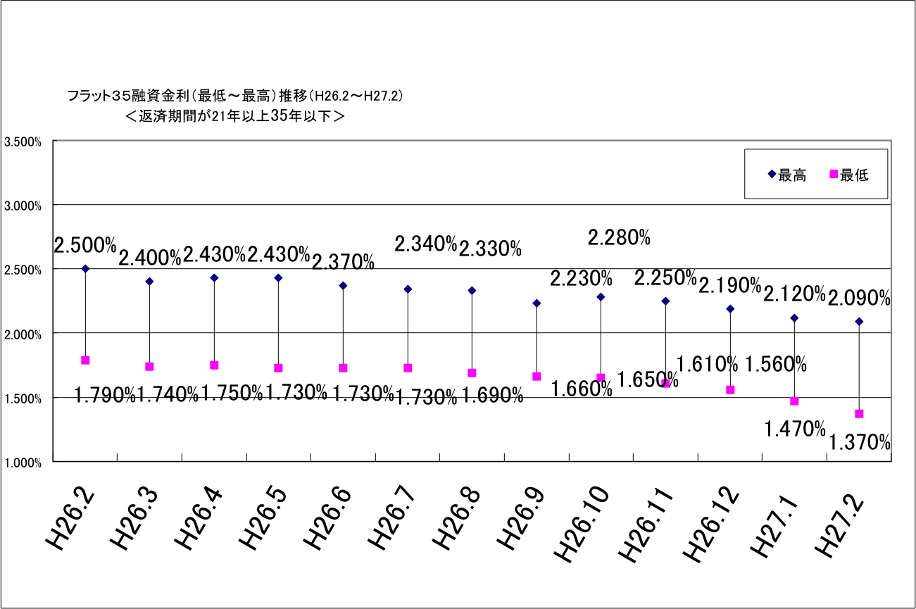 住宅金融支援機構(東京都文京区)は2月2日、民間金融機関が提供する「フラット35」の2015年2月の適用金利を公表した。