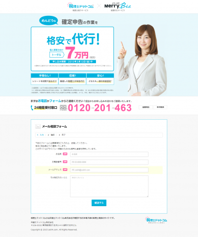 対象は2014年度の確定申告。領収書や請求書、給与明細、銀行の通帳のコピーなどの記帳を行い、確定申告書の作成、提出まで申告に必要な一連の業務を代行する。3月13日まで受け付ける。販売価格は7万円。