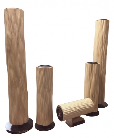「NENRIN90c」は長さ90cmのもの2本セット。1本の北山杉からスピーカー1本しか取れないことから、2本セットとするために太さや柄を合わせるのが難しく、年間50セット程度しか供給できない希少価値の高い製品。価格は税別30万円。