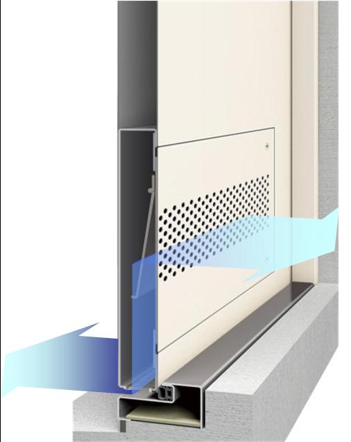 扉底辺に設けられた開口と室内側の換気パネルで通気。操作ツマミを上下にスライドするだけで、必要なときだけ換気を行うことができる。