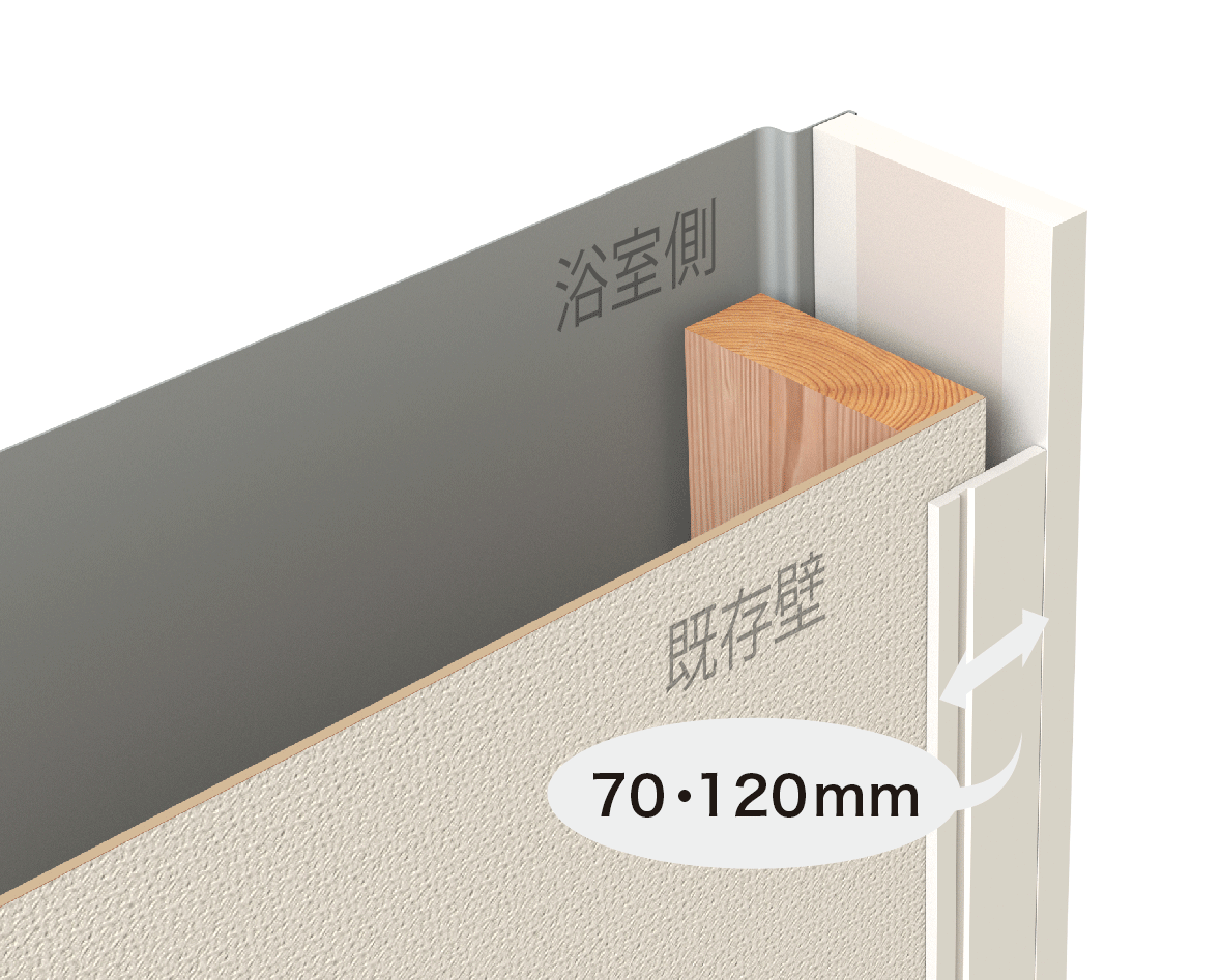 浴室リフォームにおいて、入り口のドア枠と壁との取り合い部に隙間が発生するが、これを簡単・短時間でカバーできる人気商品。樹脂製のため腐れに強く、掃除もしやすい。 7x70x2305と7x120x2355の2サイズ。4600円/本〜。