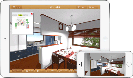 同アプリは、プランの拡大縮小や回転表示、階層や部屋の表示切り替えなどが簡単な操作で行えることから、パースや図面だけでは伝えきれないプランの完成イメージを施主へわかりやすく提案することができるもの。