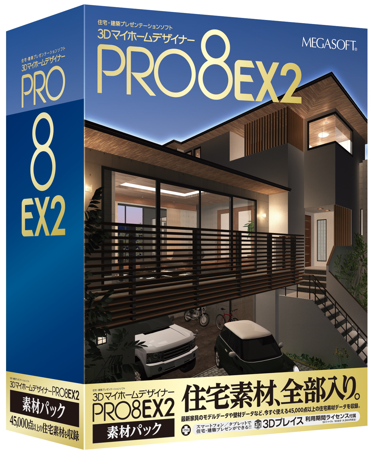 メガソフト(大阪府大阪市)は2月27日、建築プレゼンテーションソフト「3DマイホームデザイナーPRO8 EX2素材パック」を発売する。