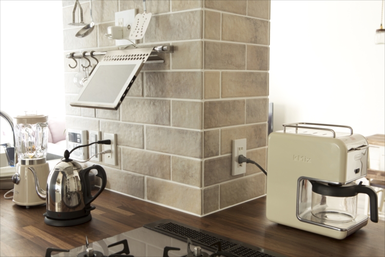 このほか、クックパッドのレシピを見ながら調理できるよう、スマートフォンやタブレットを立てかけるホルダーをコンロとシンクの間に設置している。