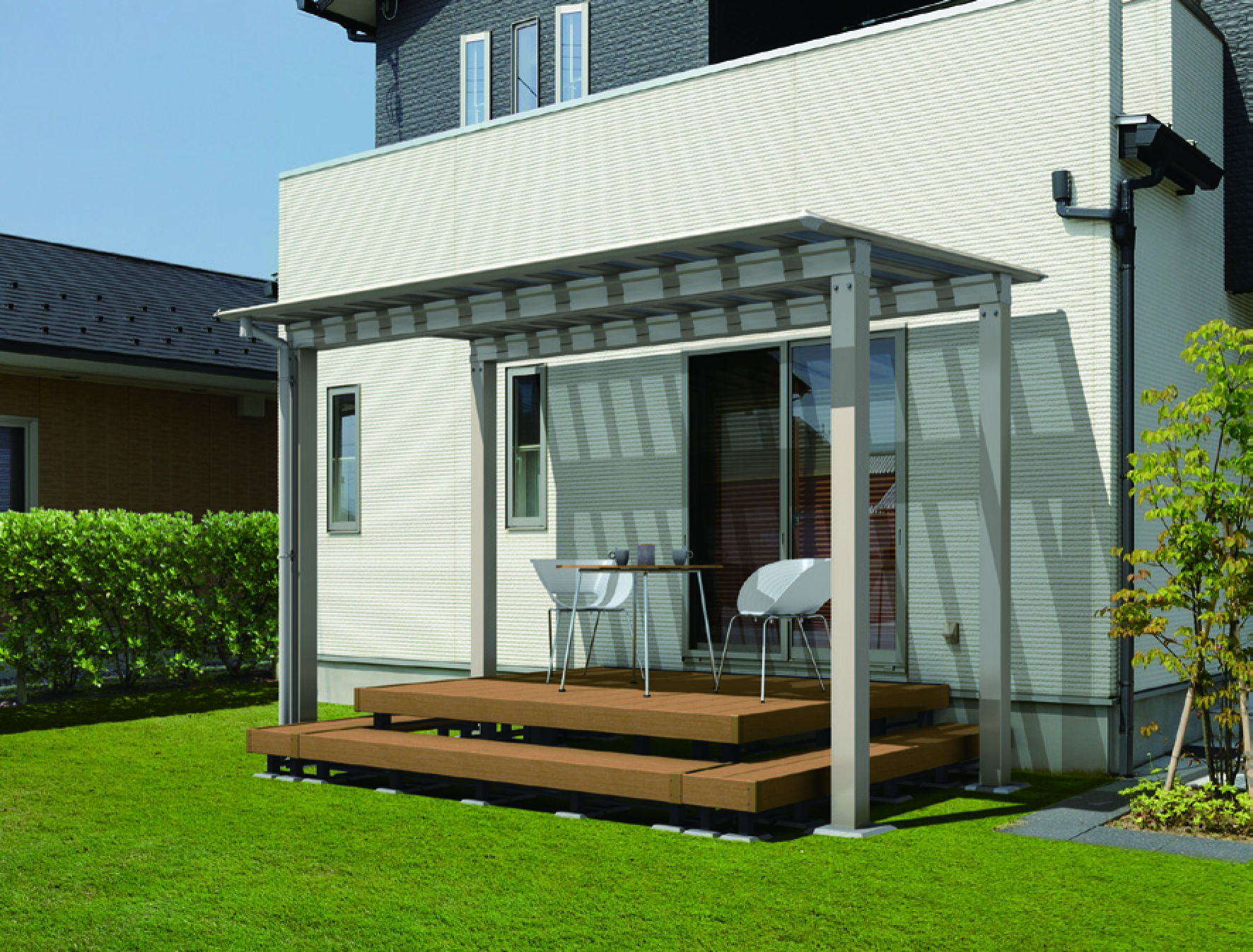 同社の人工木デッキ「ひとと木2」と組み合わせてデッキ屋根として使える専用サイズを追加。