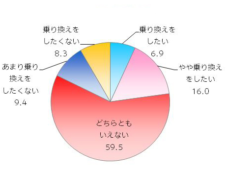 新電力会社への乗り換え意向を聞くと、「乗り換えをしたい」(6.9%)、「やや乗り換えをしたい」(16%)をあわせて2割強に。