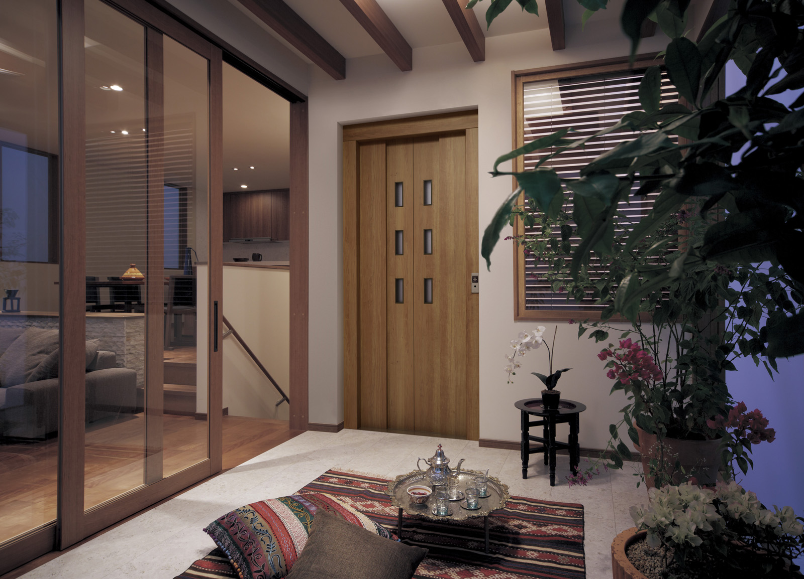 「ベリティス」は、木目・照り・色彩などで木味感を再現したインテリア建材シリーズ。これをエレベーターの主要基材に取り入れることで上質なインテリア空間との調和、同社建材とのトータルコーディネートが可能になった。
