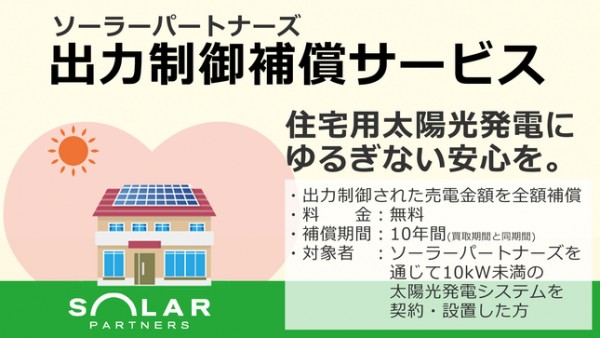 ソーラーパートナーズ(東京都港区)は、電力会社に買い取りを制限された分の電気の売電額を同社が負担する「出力制御補償サービス」の対象期間を6月30日まで延長することを決定した。同サービスは、当初3月31日までの契約分を対象期間としていた。