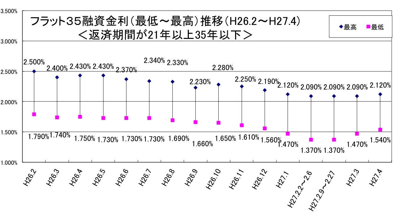 住宅金融支援機構(東京都文京区)は4月1日、民間金融機関が提供する「フラット35」の2015年4月の適用金利を公表。2カ月連続で金利が上がった。