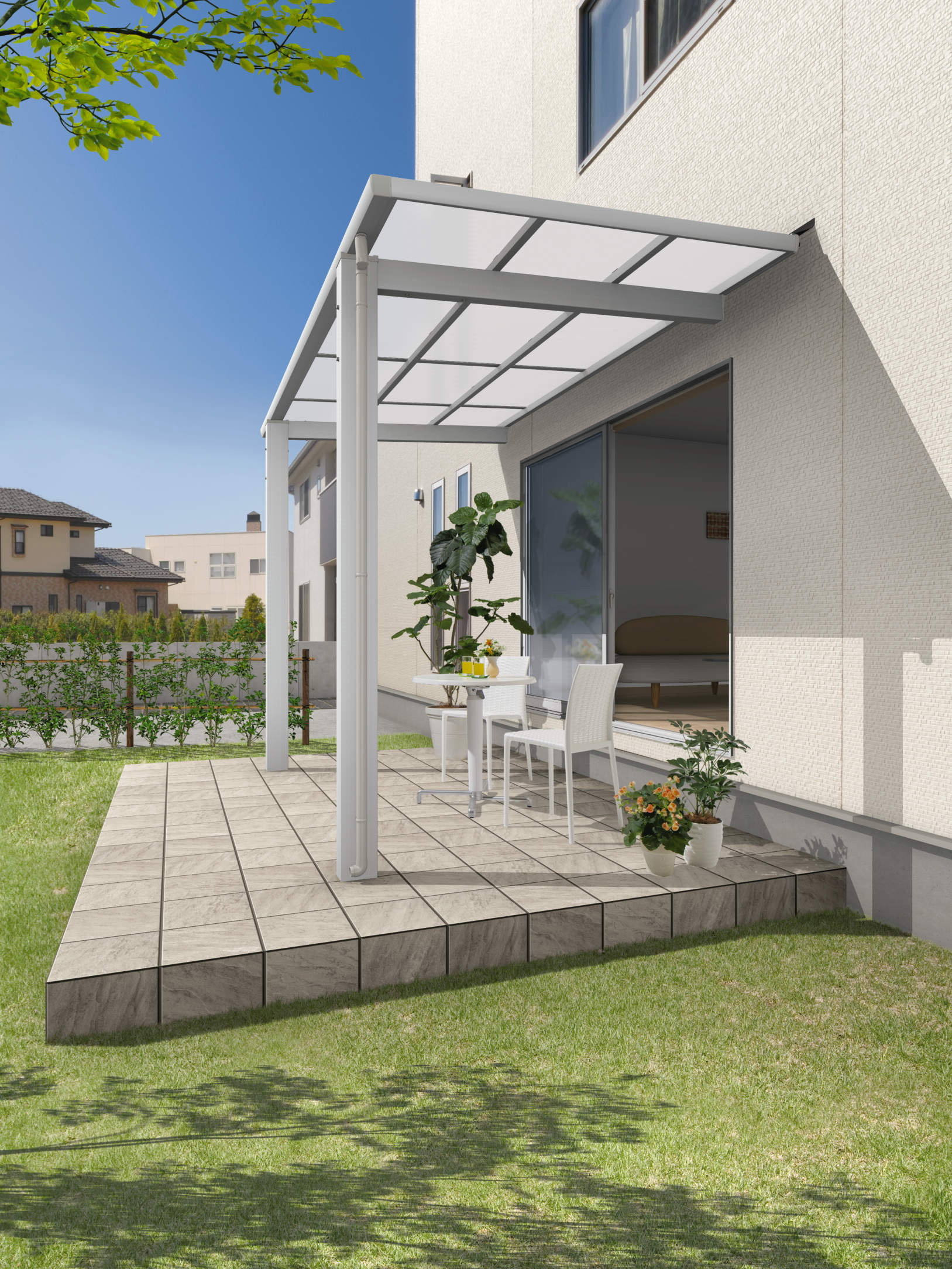 三協立山(富山県高岡市)三協アルミ社は4月1日、住宅の構造躯体を傷めずに設置できる独立式のテラス「メニーウェルD」を発売した。