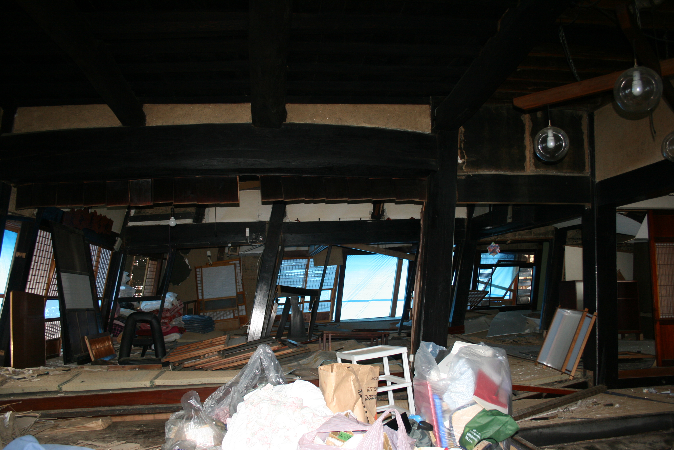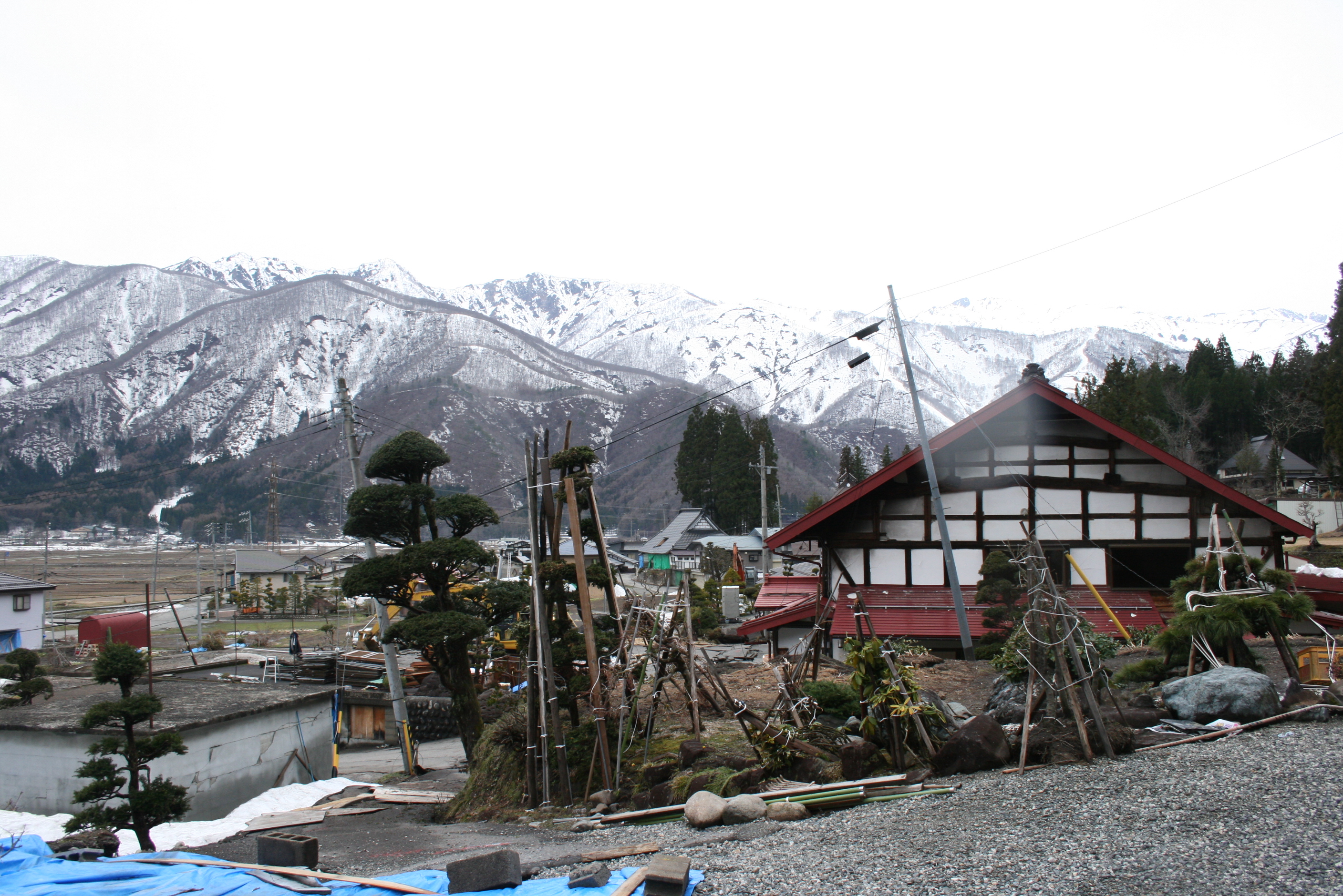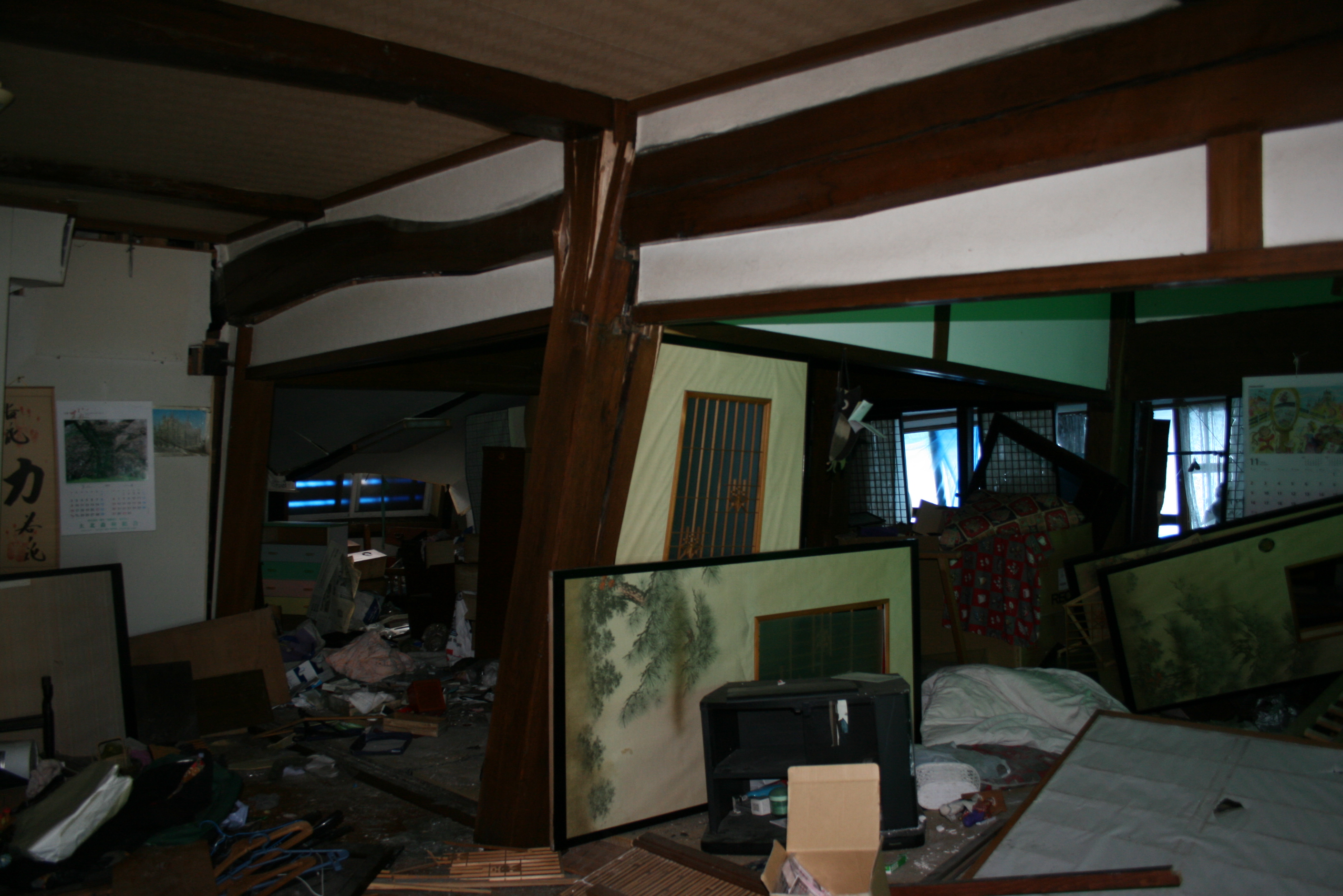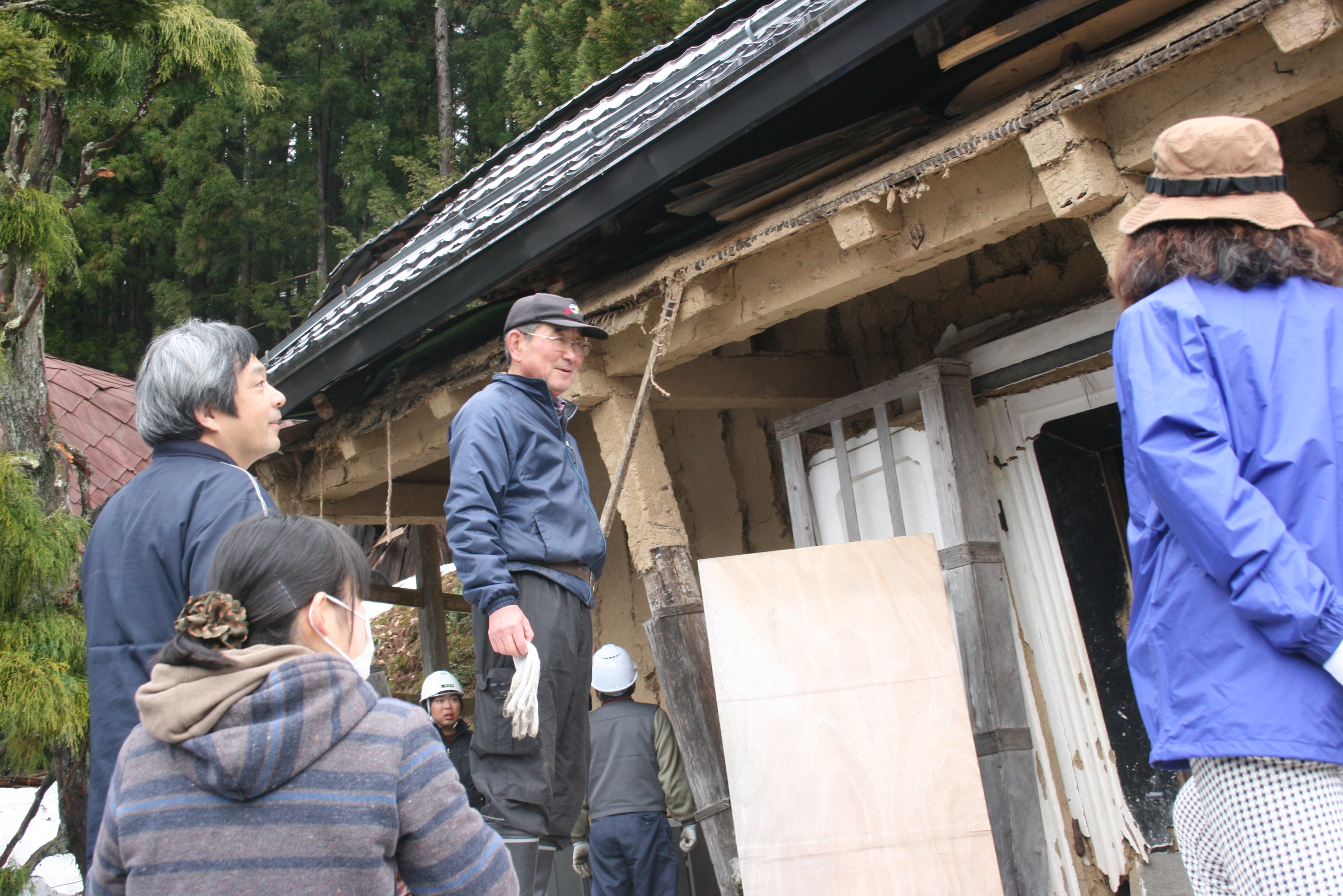 同地区では雪どけとともに、公費による解体がいっせいに始まるところ。住宅再建も動き出す。その前に伝統的な建物の被害状況を調べ、地域固有の建築様式やその背景にある歴史・文化・生活を記録することが今回の活動のねらいだ。建物の写真撮影や実測を行って平面・立面・断面を書き起こすとともに、家主から過去の暮らしをヒアリング。民具・道具や調度品もできる限り救出する。