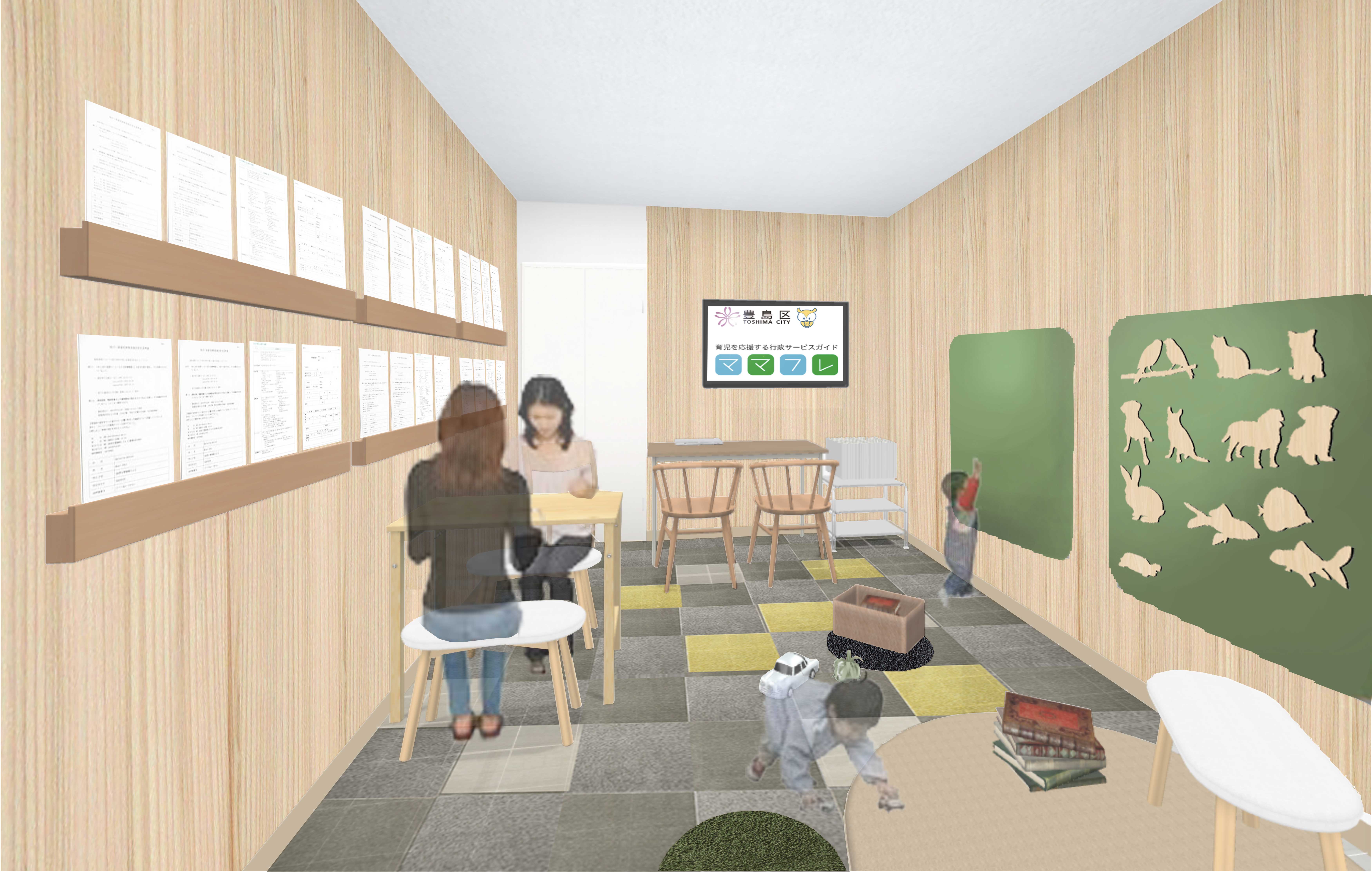 「無印良品」の良品計画(東京都豊島区)は、5月7日にオープンする東京都豊島区の新庁舎4階「子育てインフォメーション」の内装コーディネートに協力し、同社の家具やタイルカーペットなどを導入する。