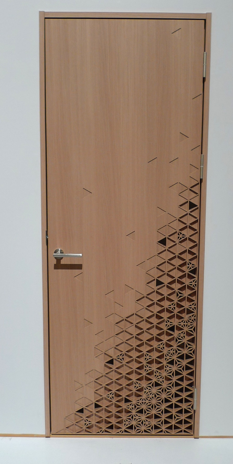 照明器具と一体化した「lamp」、引戸の技術を応用し上部が3段階にスライドして採風・採光できる「slide」、和室の建具で使われてきた組子の技術を生かした「kumiko」、棚や額縁を一体化した「wall」、ドア自体に角度をつけることで壁の出隅に取り付けられる「corner」などどれも超個性的なデザインばかり。