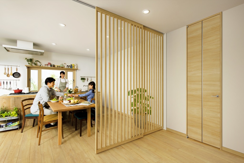 YKK AP(東京都千代田区)は、2004年の発売以来好評を得ているアルミ素材の室内引戸・間仕切り「スクリーンパーティション」のバリエーションを拡充。スリムで軽快な印象の木調細格子デザイン「Jタイプ」を6月1日に発売する。