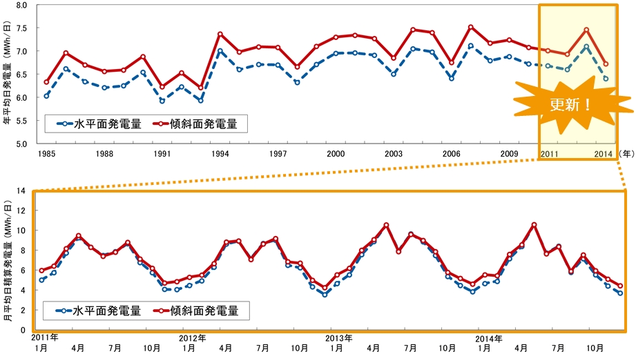 今回新たに、2011〜2014年までの4年分の解析データを加えることにより、近年の日射量の特性を踏まえた事業採算性やリスクの評価が可能になった。