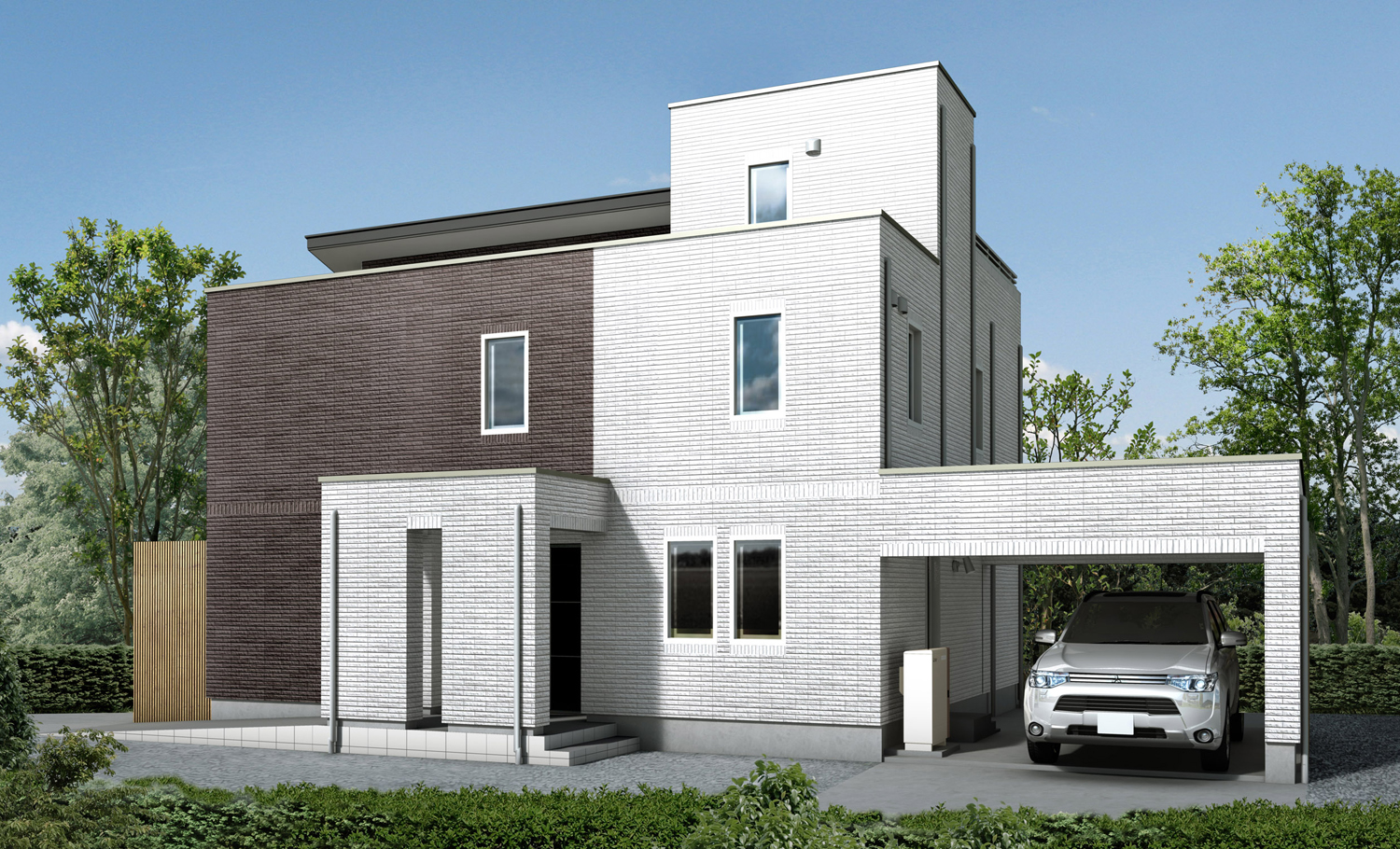 建物は地上3階建て(3階はルーフガーデン)で、V2H(ビークルトゥホーム)システム、太陽光発電システム、HEMSの連携によるエネルギーの自立生活や、HEMSと換気・空調機器の連携による快適空間を体感することができる。