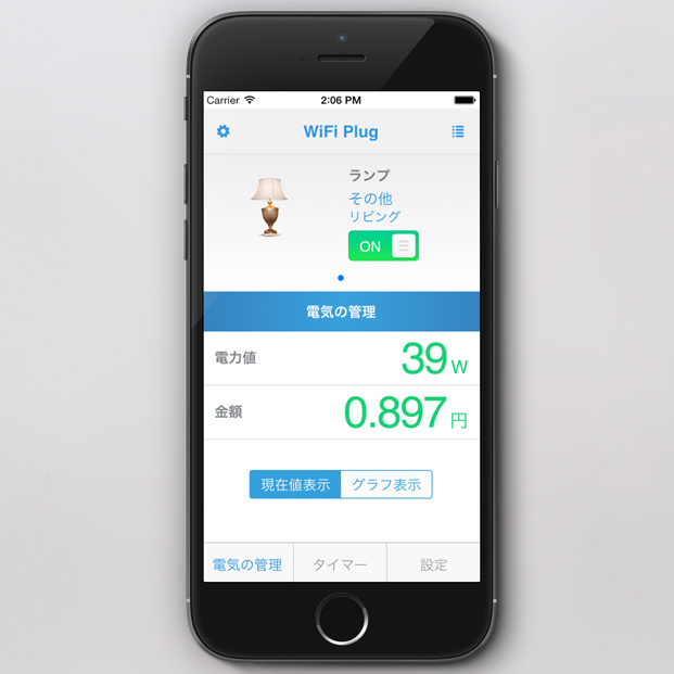 スマホを使って家電のON/OFFやタイマー予約ができるほか、現在・過去の消費電力の可視化、WiFi中継機能による通信エリアの拡大を実現。また、離れて暮らす高齢の家族宅に設置すれば、不自然な消費電力を検知してメールで知らせる見守り機能も搭載する。
