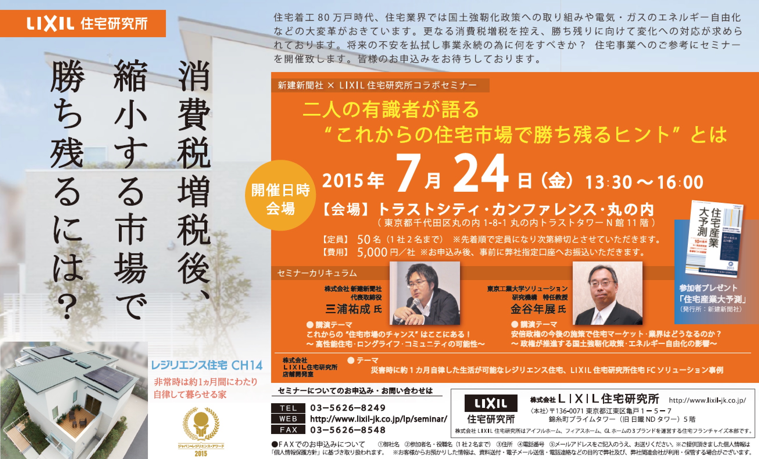 LIXIL住宅研究所と新建新聞社は7月24日、東京・丸の内トラストタワーにおいてコラボセミナー「消費増税後、縮小する市場で勝ち残るには?」を開催する。
