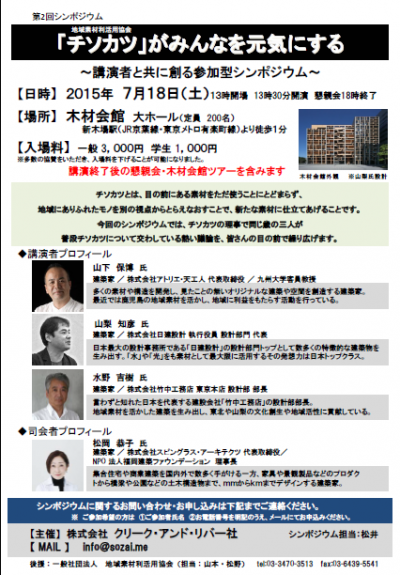 参加費は懇親会と木材会館ツアーの費用を含め、一般3000円、学生1000円。定員は200人。詳細や申し込みは、[email protected]まで。