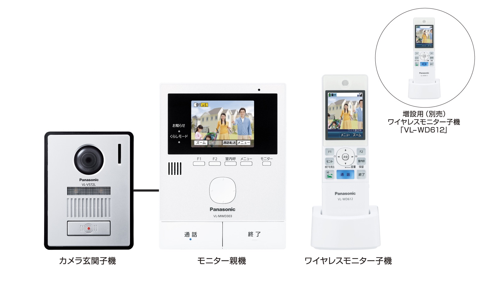 ワイヤレスモニター付テレビドアホンとテレビドアホン(VL-SWD303KL/VL-SVD303KL(写真のタイプ)、VL-SWD302KL/VL-SVD302KL)4機種をラインアップ。