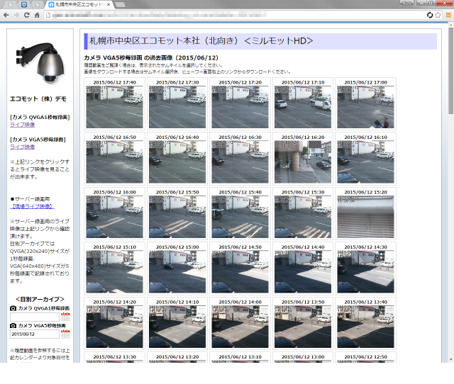 標準録画プランでは、640x480ピクセルの映像を5秒に1コマの間隔で記録。保存期間は直近30・60・90日間の3パターンから選べ、それ以上の期間データを保持したい場合には、定期的に自社のパソコンなどにダウンロードすることができる。