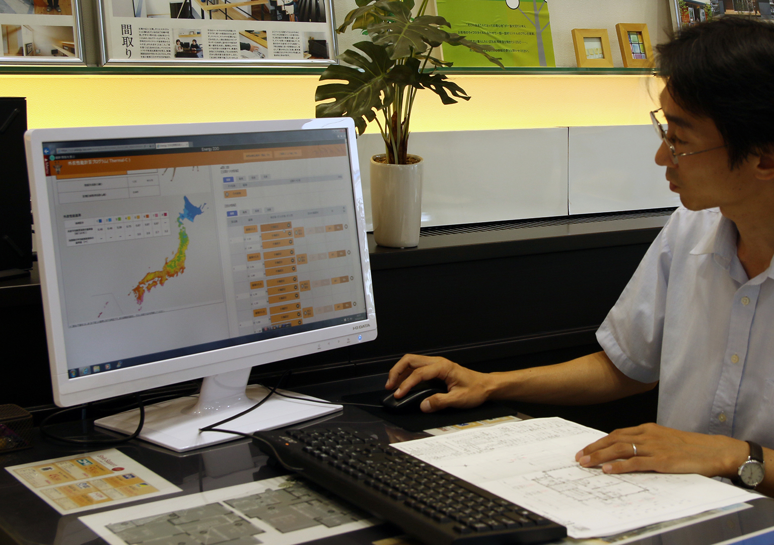 CRMの温熱・省エネ統合ツール「EnergyZoo(エナジーズー)」を使って、注文住宅1棟ごとに異なる立地環境や間取りに合わせて、温熱環境と省エネ性をシミュレーション。これから建てる住宅の夏冬の室温変化や年間の光熱費がどうなるかを顧客に前もって説明し理解してもらう。