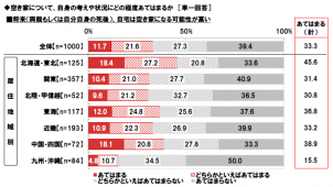 また、生活実態と老後の不安に関する質問では、50代~70代の1割が独身であり、女性の6人に1人がひとり親である実態が明らかになった。「老後の生活について、不安を感じること」についての質問は、「体の不自由」(60.9%)、「大きな病気、怪我」(60.3%)、「認知症」(59.4%)が上位だった。サービス付き高齢者住宅の利用については、「既に利用している」が0.3%、「老後は利用したい」が40.8%だった。