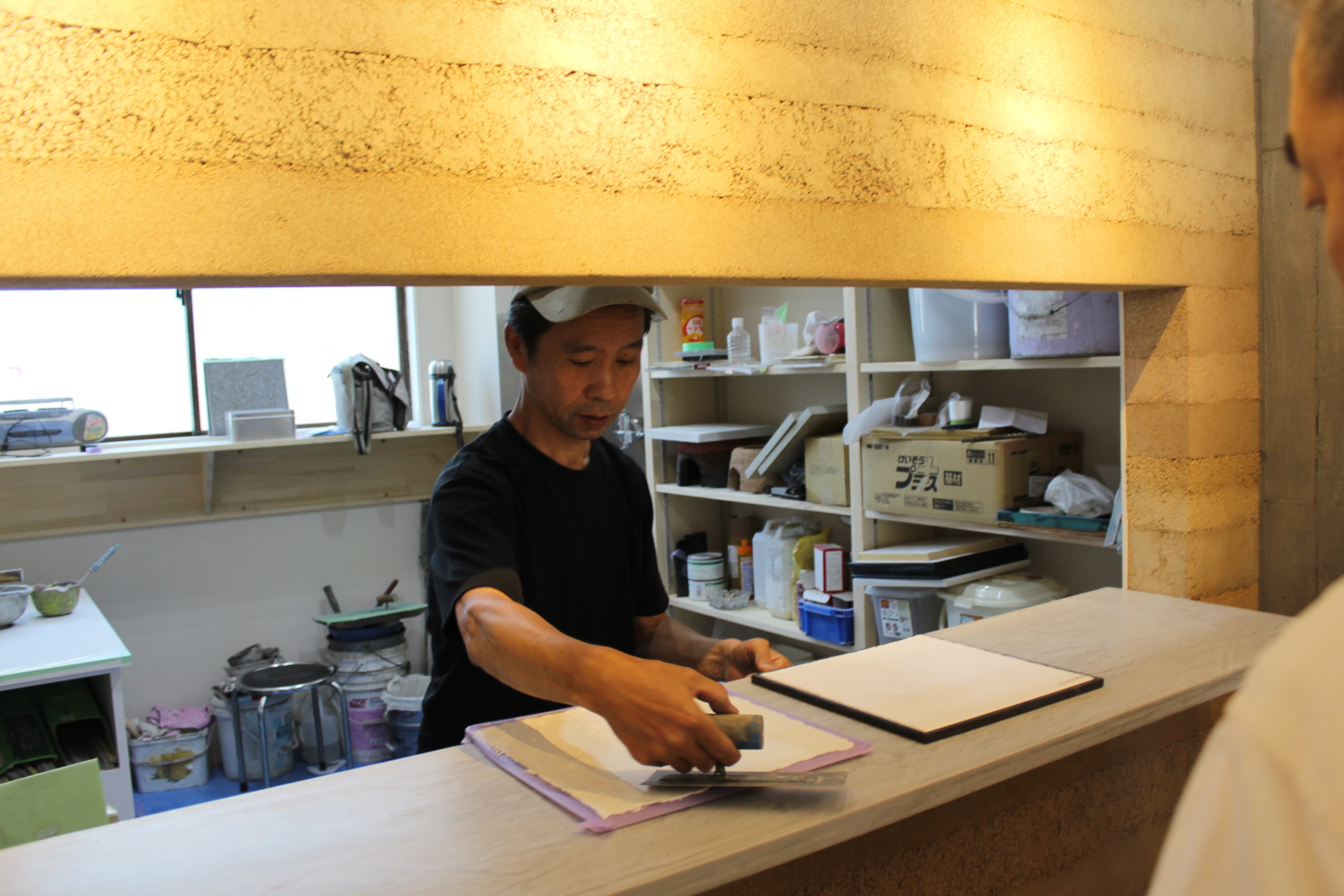 さらにショールーム奥の工房も従来より面積を拡充。職人が施主や設計士と対話形式でサンプルを作り、骨材や顔料の種類や配分、鏝の種類や動かし方などさらに細かな仕上がりを追求できる。