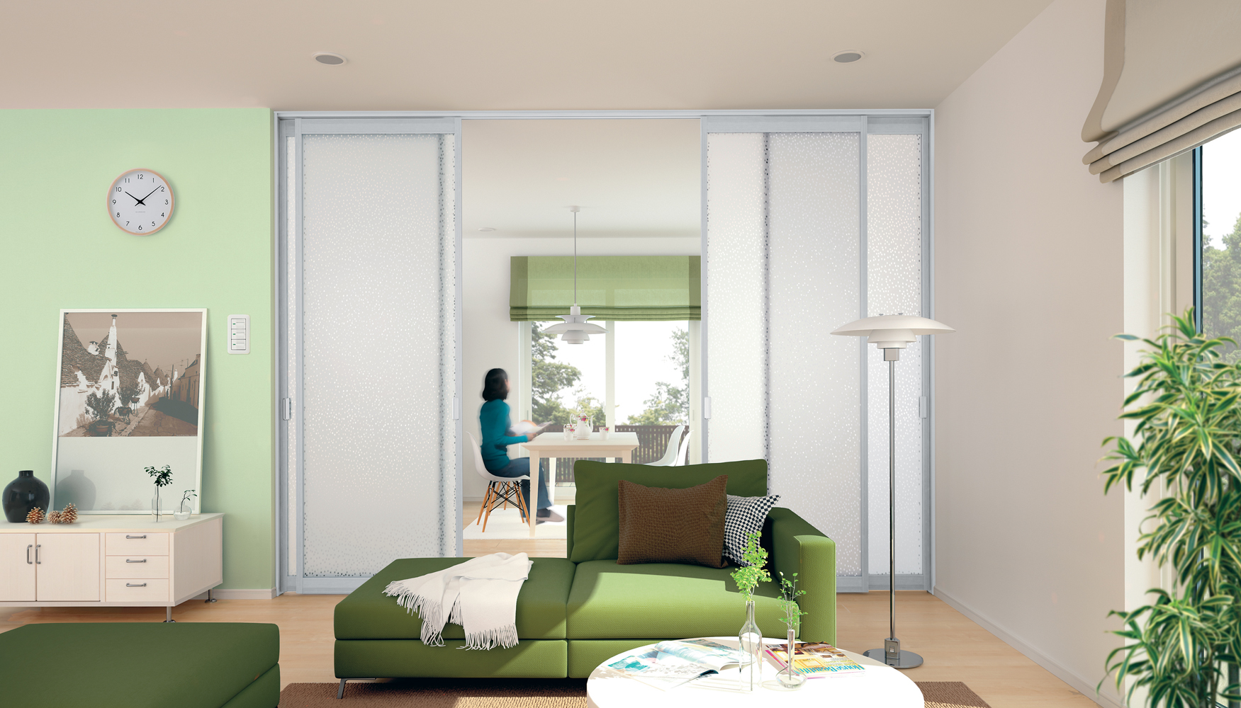 さらに引戸の樹脂パネルには、透明パネルに不透明インクで両面印刷をほどこした新デザイン「ながれ」と「しずく」を追加する。角度によって見え方が異なり、奥行きや立体感を感じることができる。