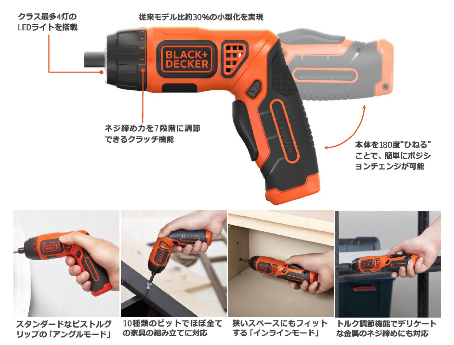 電動工具メーカーのブラック・アンド・デッカー(米コネチカット州)は9月中旬、本体を180°ひねることで狭い場所でのネジ締めにも対応するコードレス電動ドライバー「LEDツイストドライバー」を発売する。