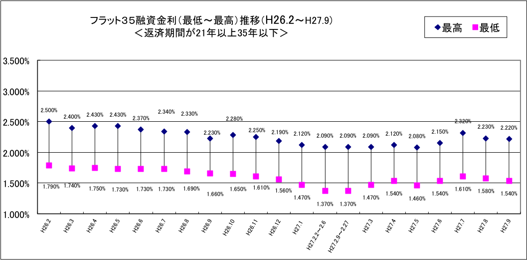住宅金融支援機構(東京都文京区)は9月1日、民間金融機関が提供する「フラット35」の2015年9月の適用金利を公表した。