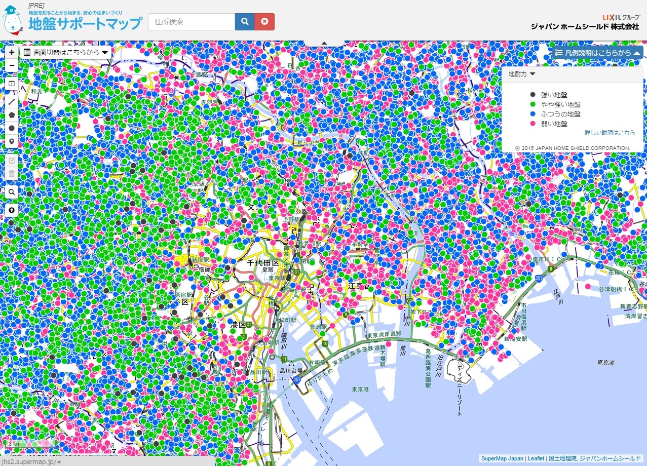 ジャパンホームシールド(東京都墨田区)は9月1日、地域の地盤調査データや生活に役立つ土地情報を地図上で閲覧できる無料ウェブサービス「地盤サポートマップ」に新機能を追加。