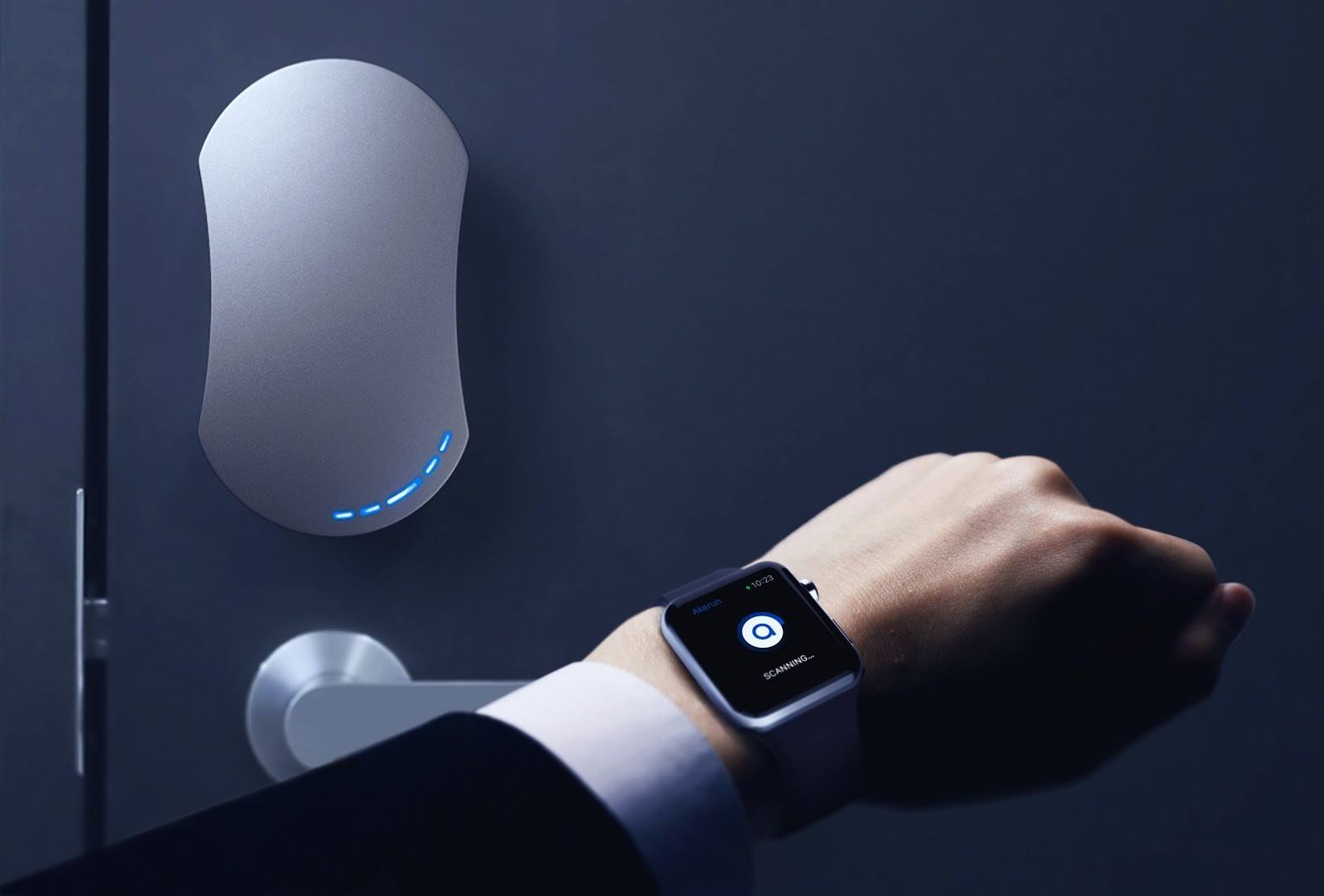 Akerunは、ドアのサムターンに後付けするだけでスマホアプリでドアの施解錠ができるもの。ゲストと一時的に施解錠の権限を共有することも可能。オートロック機能によるカギの閉め忘れ防止、開閉履歴の確認ができる。