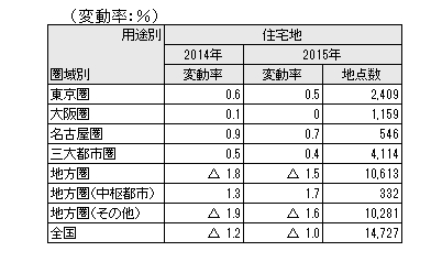 国土交通省は9月16日、今年7月1日時点の地価動向調査の結果を公表した。全国平均の住宅地は依然として下落をしているものの下落幅は縮小傾向が続いている。地方中枢都市(札幌市、仙台市、広島市、福岡市)の住宅地は、上昇地点の割合が増加し、7割弱の地点が上昇。平均変動率は3年連続上昇しており、上昇幅も昨年より拡大している。三大都市圏の住宅地は、東京圏・名古屋圏で小幅な上昇を続けている。