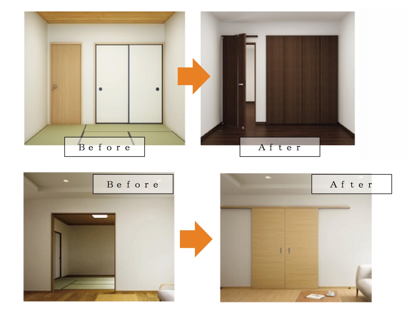 「かんたんドアリモ アウトセットシリーズ」は、従来の開口部を大がかりな工事をせずに開き戸や引戸、折戸に変えられる建具リフォーム向け商品。開き戸を吊り式の引戸にしたり、押し入れをスッキリとしたクローゼットに一新することができる。