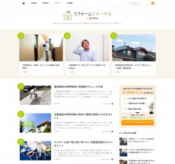 住宅塗装のフランチャイズ本部を運営するプロタイムズ・ジャパン(福岡県志免町)は、10月1日に住宅リフォームや住宅塗装の情報を発信するウェブメディア「リフォームジャーナル」を公開した。住宅塗装やリフォームを検討する人の不安や悩みを解消し、納得のいくメンテナンスを実現するための情報を提供していく。