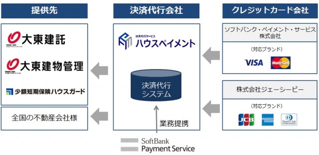 大東建託グループの大東建物管理(東京都港区)はこのほど、賃貸住宅に特化したクレジットカード決済代行会社「ハウスペイメント」(東京都港区)を設立した。また、ハウスペイメントの設立にあたり、ソフトバンクグループ傘下のソフトバンク・ペイメント・サービス(東京都港区)と決済サービスに関する提携契約を締結した。