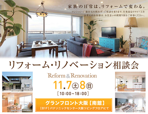 阪急不動産(大阪市)は11月7日と8日に「リフォーム・リノベーション相談会」を開催する。メーカー各社の大型ショールームが集中するグランフロント大阪で、マンションから戸建てまで、住宅リフォームやリノベーションに関する相談を受け付ける。