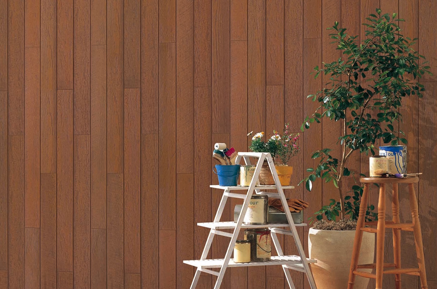 新シリーズからは、本物の古木から型取りし、板張りの厚みの不揃い感を再現した「ラスティウッドP」を10月から発売。8色をそろえ、住宅だけでなく店舗にも適する。