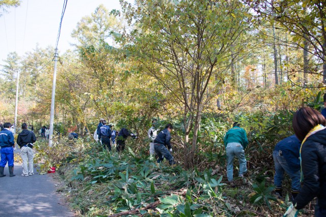 同町の町有林1林班を借り上げ、5カ年にわたり植栽や下草刈り、地ごしらえを行う。県の仲介によって同町と「森林の里親」契約を締結、10月20日に調印式を行い、その後同社スタッフと協力会の職人ら約200人が参加して草刈り作業を実施した。来年6月には紫陽花を植樹する。