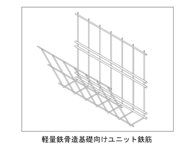 住宅用としては普及しているあらかじめ組み上がった状態の基礎用ユニット鉄筋を、住宅以外の小規模建物の基礎工事に応用したもの。コンビニのような、ある程度基礎の形状が決まっている低層店舗などで活用できるという。
